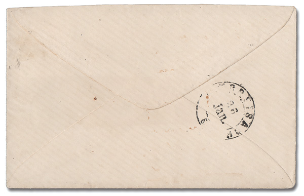 8602 cover 15 image1860, Queen Isabella II, "Y¼"r on 2r dull rose (Scott 15), four clear margins tied by a bold oval grid on a clean local Havana folded cover; Havana c.d.s. (all periods represented) 29, 1862, Very Fine.
