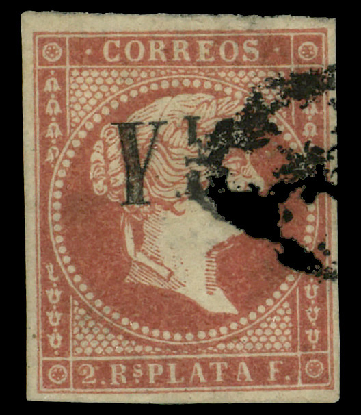 8601 O 8 image1855, Queen Isabella II, "Y¼"r on 2r orange red (Scott 8), single, Very Fine to Extremely Fine.