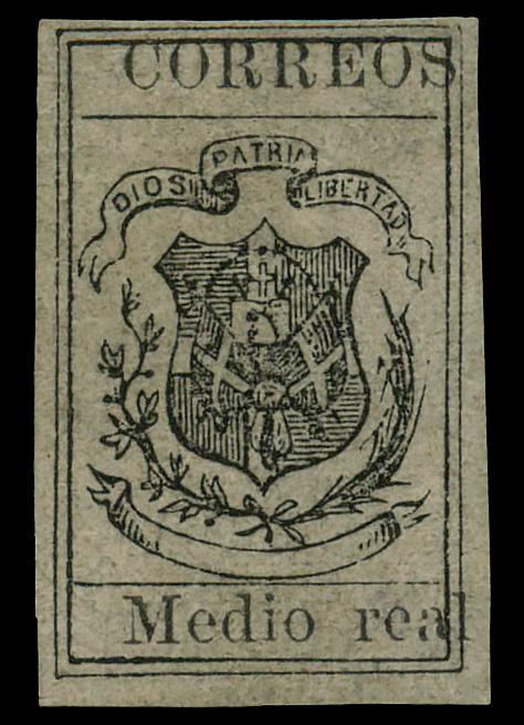 8613 ng 15 image1868, ½r black on lavender paper, Coat of Arms (Scott 15), single, unused without gum, Very Fine.