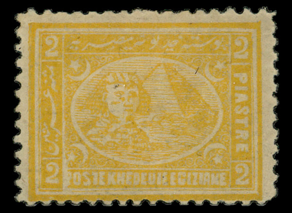 8618 og 23 image1872, 2pi dull yellow Sphinx and Pyramid (Scott 23), single, o.g., hinged, Fine.