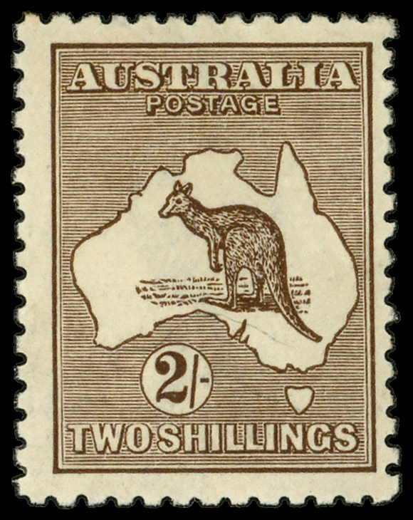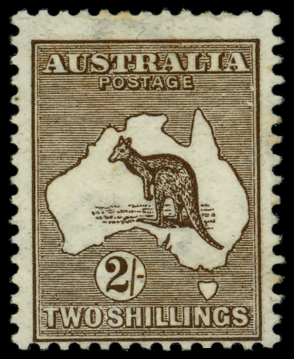 9370 og 52 image1916, Kangaroo and Map, 2s brown (Scott 52), 3rd watermark, single, o.g., hinged, Fine to Very Fine.