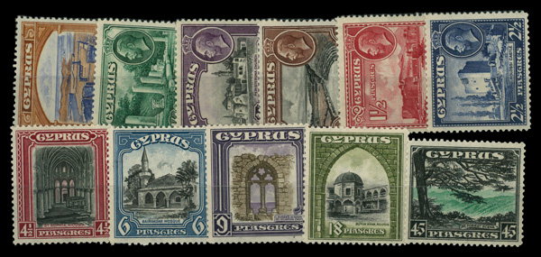 9394 og 125-135 image1934, King George V Pictorials, ¼pi to 45pi complete (Scott 125-135), set of 11, complete set of singles, o.g., hinged, Fine to Very Fine.