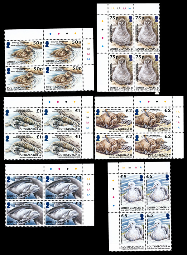 9400 nhbl 307-318 image2004, 1d-£5 Wildlife, complete (Scott 307-318), set of 12, plate blocks of 4, o.g., never hinged, Very Fine.