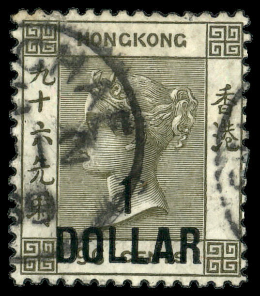 9404 O 55 image1885, Queen Victoria, $1 on 96¢ gray olive (Scott 55), Crown CA watermark, single, Fine to Very Fine.