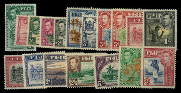 9401 og 117-131B image1938-55, King George VI Pictorials, ½d to £1 complete (Scott 117-131B), complete set of singles, o.g., lightly hinged, Fine to Very Fine.