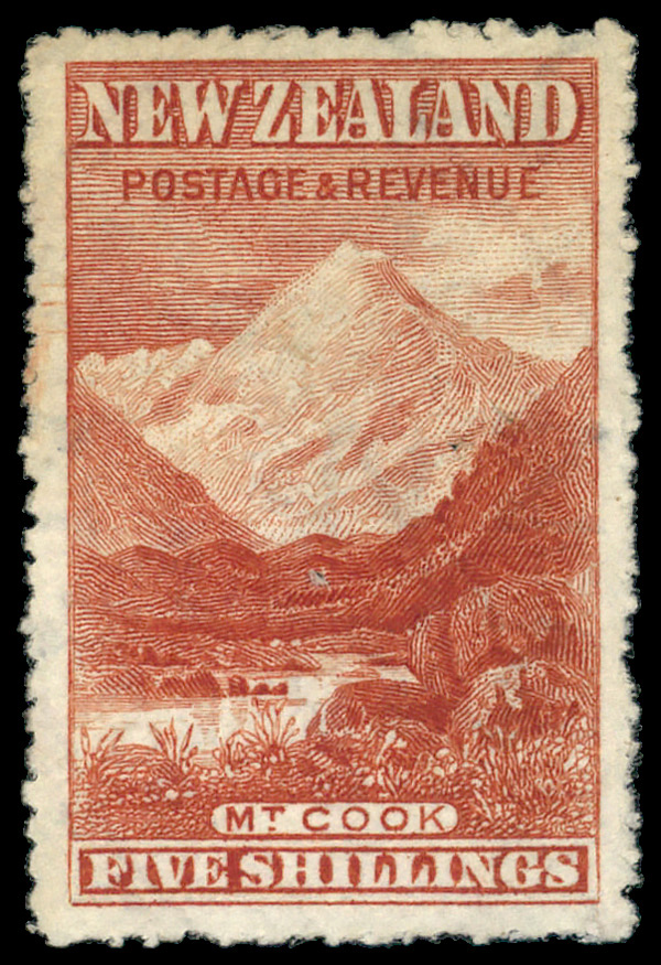 9436 O 120 image1902-07, Mt. Cook, 5s vermilion (Scott 120), Single NZ & Star watermark, Extremely Fine.