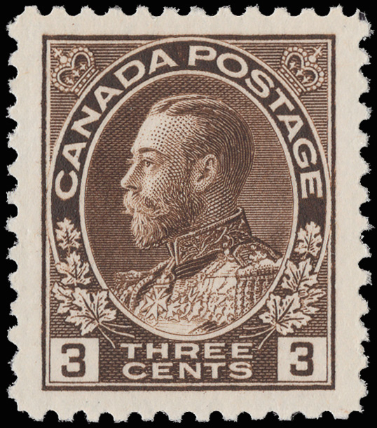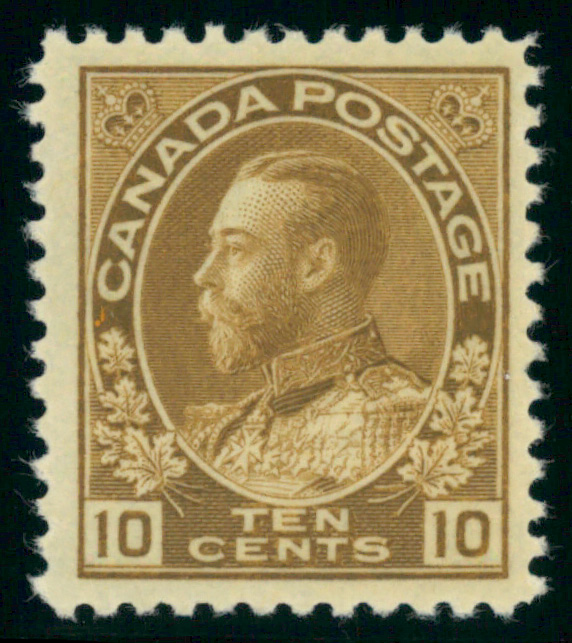 9516 og 118 image1925, King George V "Admiral", 10¢ bister brown (Scott 118), o.g., lightly hinged, Very Fine.