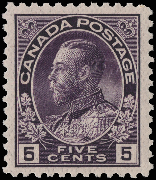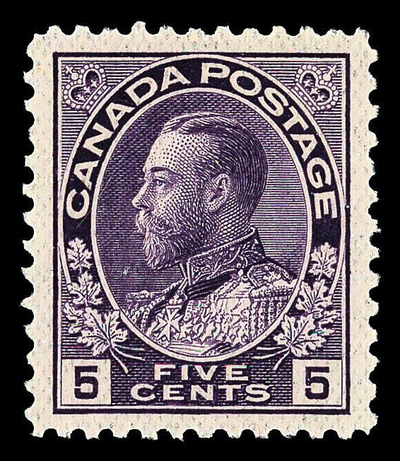 9508 og 112 image1922, King George V "Admiral", 5¢ violet, wet printing (Scott 112), o.g., hinge remnant, Very Fine to Extremely Fine.