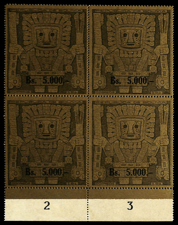 9553 nhbl 450 image1960, 5000b on 5b gray on gold Gate of the Sun (Scott 450), block of 4, o.g., never hinged, Very Fine to Extremely Fine.