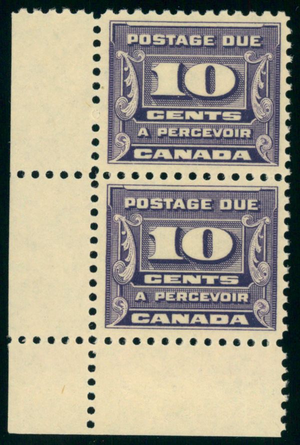 9534 nh J14 imagePostage Due, 1933, 10¢ dark violet (Scott J14), vertical pair, o.g., never hinged, Very Fine to Extremely Fine.