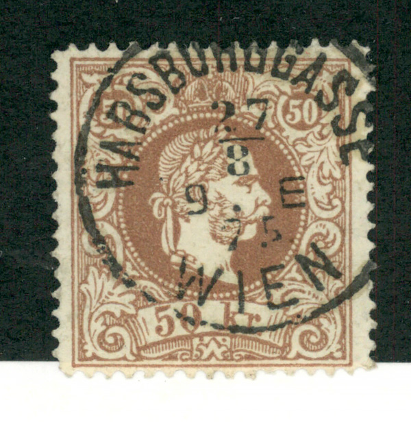 9548 O 33 image1867, Franz Joseph (coarse printing), 50kr light brown (Scott 33), single, Fine to Very Fine.