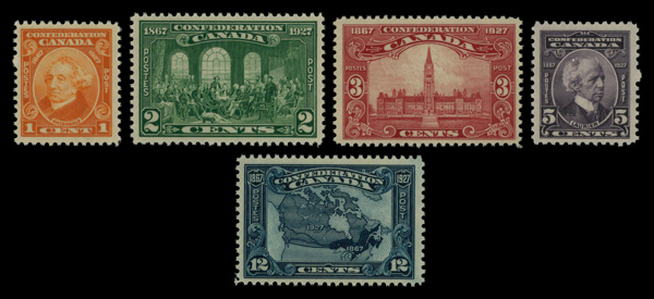 9521 nh 141-145 image1927, Confederation complete (Scott 141-145), complete set of singles, o.g., never hinged, Fine to Very Fine.