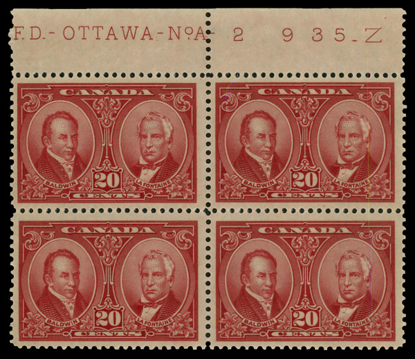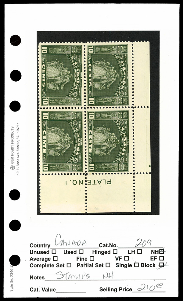 9528 nhbl 209 image1934, 10¢ United Empire Loyalists (Scott 209), block of 4, o.g., never hinged, Fine to Very Fine.