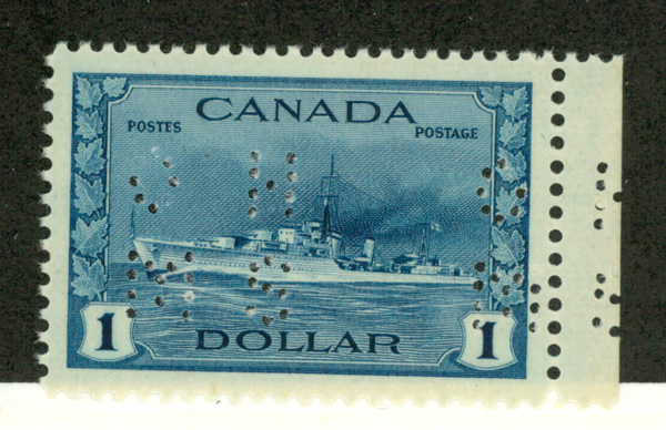 9530 nh AO262 image1942, $1deep blue Destroyer 4 hole perfin OMHS (Scott AO262), single, o.g., never hinged, Fine to Very Fine.