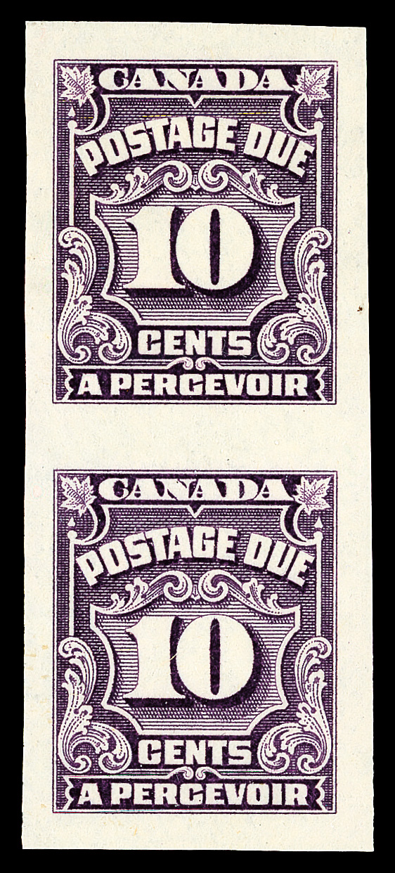 9535 nh J20a imagePostage Due, 1935, 10¢ dark violet, imperforate pair (Scott J20a), o.g., never hinged, stellar vertical pair, looking like it was printed yesterday, Extremely Fine, only 100 pairs issued, with 2019 P.S.E. certificate graded XF 90.
