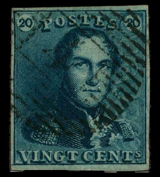 9550 O 2 image1849, 20c blue (Scott 2), single, Numerical cancel 4., Extremely Fine to Superb.