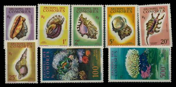 9589 nh 48-53, C5-C6 image1962, Sea Shells 50c - 500fr complete (Scott 48-53, C5-C6), complete set of singles, o.g., never hinged, Fine to Very Fine.