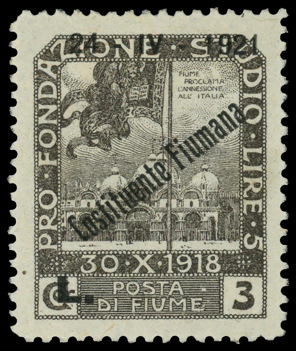 9650 og 158 image1921, Church of St. Mark's, Venice 3cor +5l black brown overprinted for the First Constituent Assembly (Scott 158), single, o.g., hinged, Fine to Very Fine.