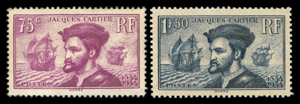 9659 nh/og 296-297 image1934, Jacques Cartier complete (Scott 296-297), o.g., lightly hinged (1 stamp never hinged), Extremely Fine.