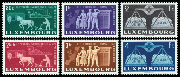 9760 og 272-277 image1951, United Europe complete (Scott 272-277), set of 6, complete set of singles, o.g., hinged, Fine to Very Fine.