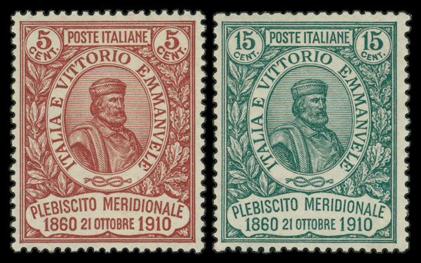 9723 og 117-118 image1910, Giuseppe Garibaldi complete (Scott 117-118), complete set of singles, o.g., hinged, Fine to Very Fine.