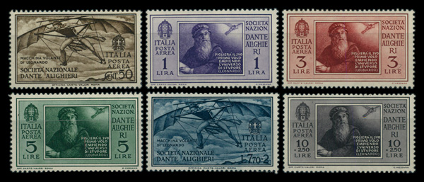 9731 nh C28-C33 image1932, Dante Alighieri Society complete (Scott C28-C33), complete set of singles, o.g., never hinged, Fine to Very Fine.