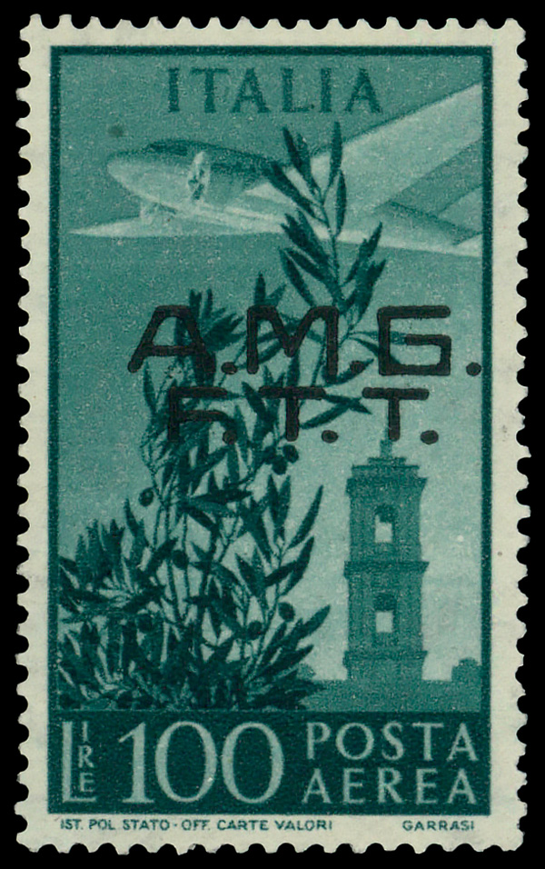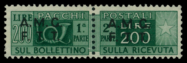 9737 og Q10 image1948, 200l green Posthorn and Star overprinted (Scott Q10), pair, o.g., hinged, Fine to Very Fine.