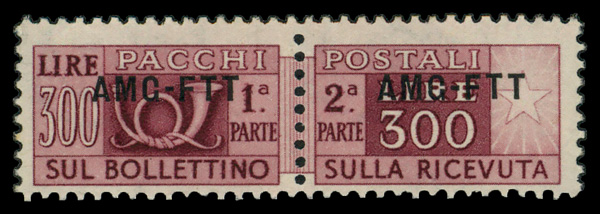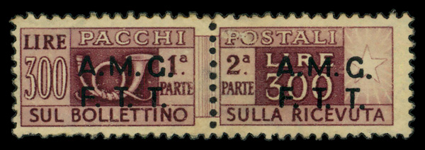 9740 nh Q24 image1950, 300l brown carmine Posthorn & Star overprinted (Scott Q24), pair, o.g., never hinged, Fine to Very Fine.