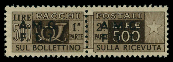 9739 og Q12 image1948, 500 brown Posthorn & Star overprinted (Scott Q12), pair, o.g., hinged, Fine to Very Fine.