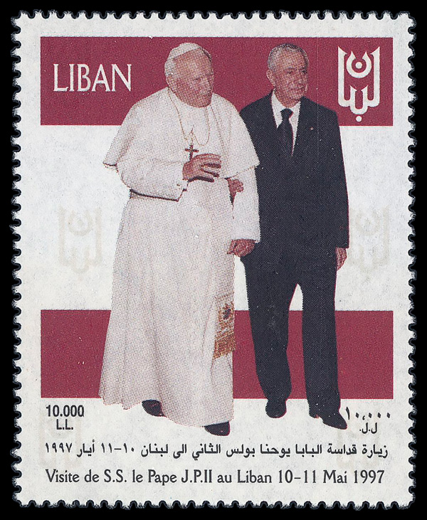 9751 nh 526 image1998, Visit of Pope John Paul II to Lebanon (Scott 526), single, o.g., never hinged, Fine to Very Fine.