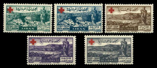 9754 nh CB5-CB9 image1947, Red Cross issue complete (Scott CB5-CB9), complete set of singles, o.g., never hinged, Fine to Very Fine.