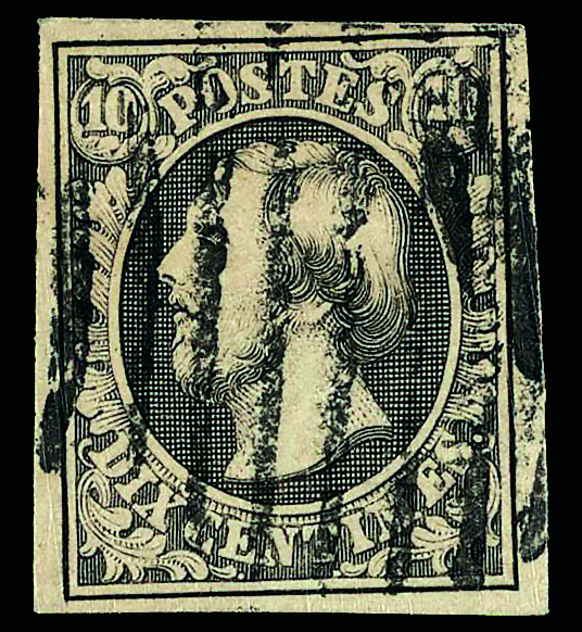 9757 O 1 image1852, Grand Duke William III, 10c gray black (Scott 1), single, Very Fine.