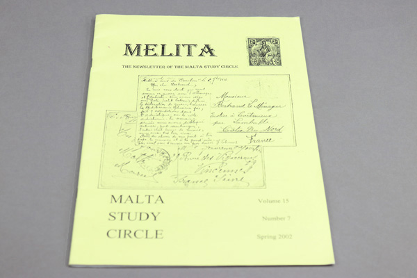 9899 L Melita 15:7 imageMelita - The Malta Newsletter, Vol. 15, No. 7, published by the Malta Study Group, 2002, 36 pages. (Image) Suggested Bid $2