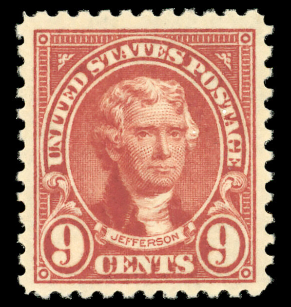 9129 og 561 image1923, 9¢ Jefferson (Scott 561), o.g., very lightly hinged, Extremely Fine, with P.S.E. encapsulated certificate graded XF 90.