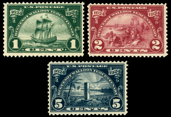 9150 nh 614-616 image1924, Huguenot-Walloon complete (Scott 614-616), set of 3, o.g., never hinged, Fine to Very Fine.