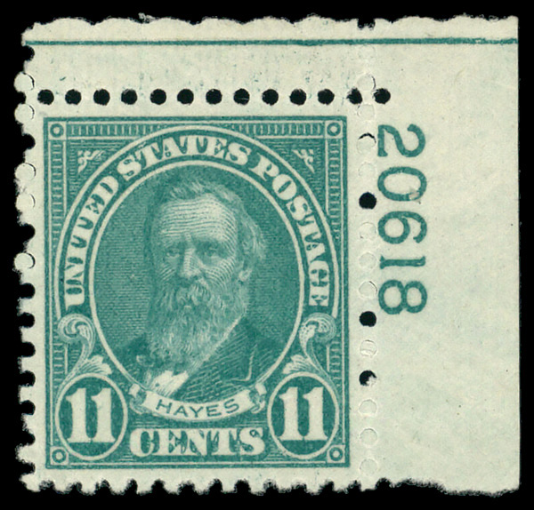 9184 nh 692 image1931, 11¢ Hayes, rotary press printing (Scott 692), plate number single, o.g., never hinged, Extremely Fine. (Image) Suggested Bid $29