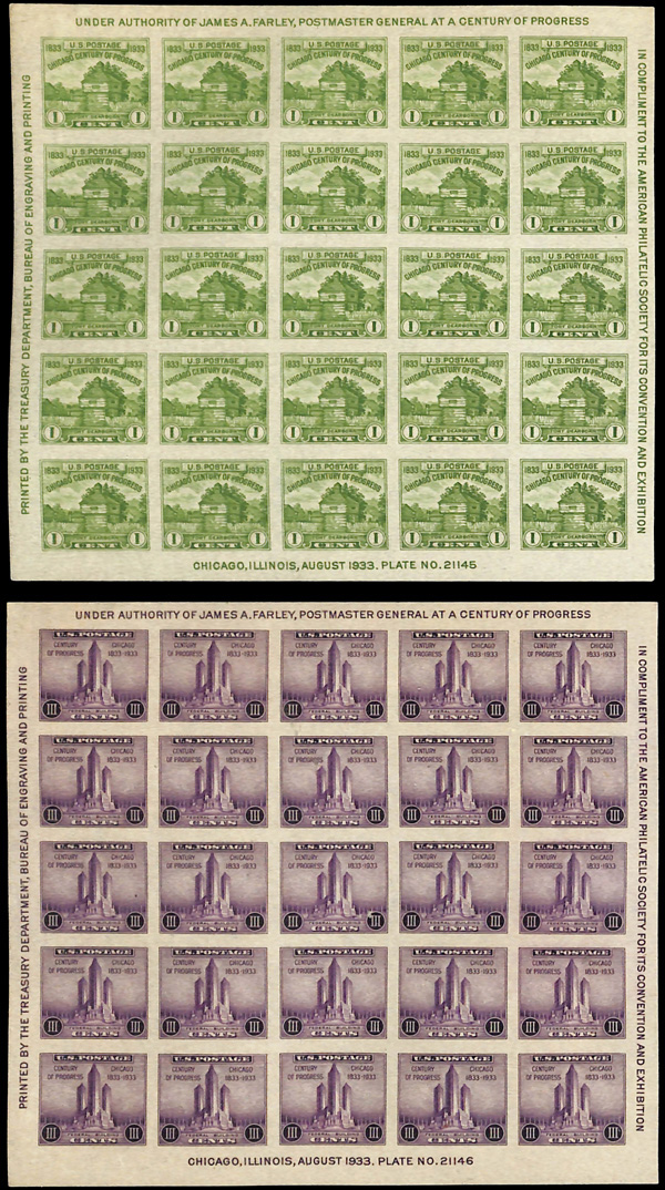 9189 ng 730-731 image1933, A.P.S. souvenir sheets complete (Scott 730-731), without gum as issued, Extremely Fine.