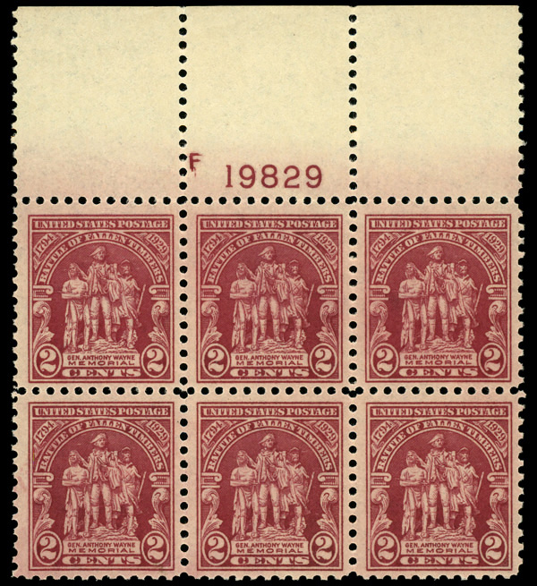9178 nhbl 680 image1929, 2¢ Battle of Fallen Timbers (Scott 680), plate block of 6, o.g., never hinged, Very Fine to Extremely Fine.