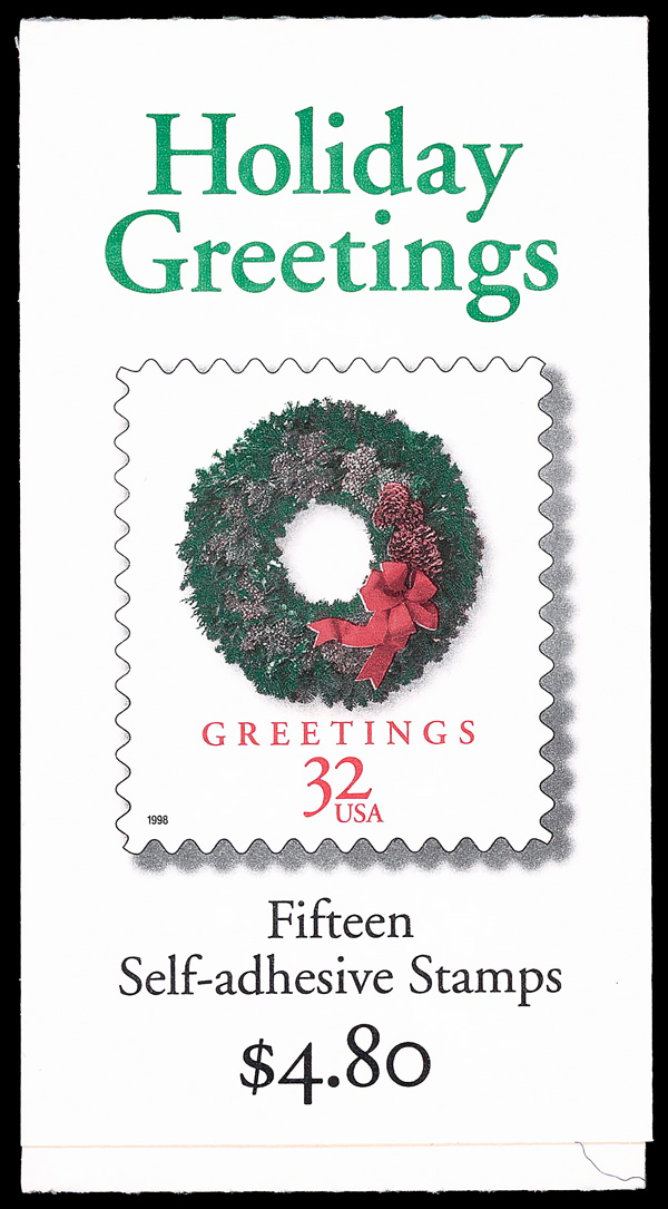 9271 BKnh BK270 image1998, $4.80 Christmas Wreath, booklet (Scott BK270), complete and unexploded, o.g., never hinged, Very Fine to Extremely Fine.