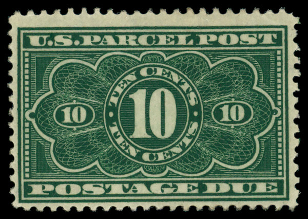9265 og JQ4 imageParcel Post Postage Due, 1913, 10¢ dark green (Scott JQ4), disturbed o.g., Fine to Very Fine.