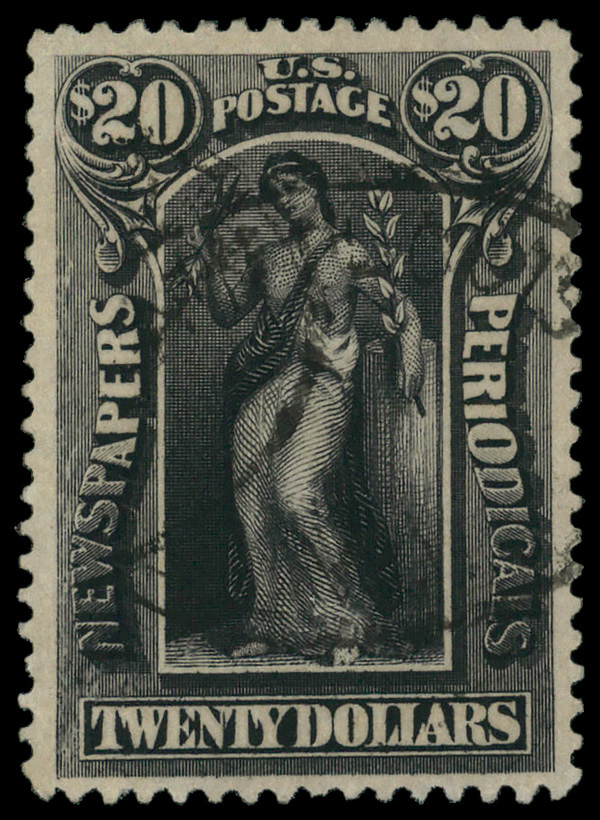 9262 O PR123 imageNewspaper, 1896, $20 slate, Bureau printing, D.L. watermark (Scott PR123), Very Fine to Extremely Fine.