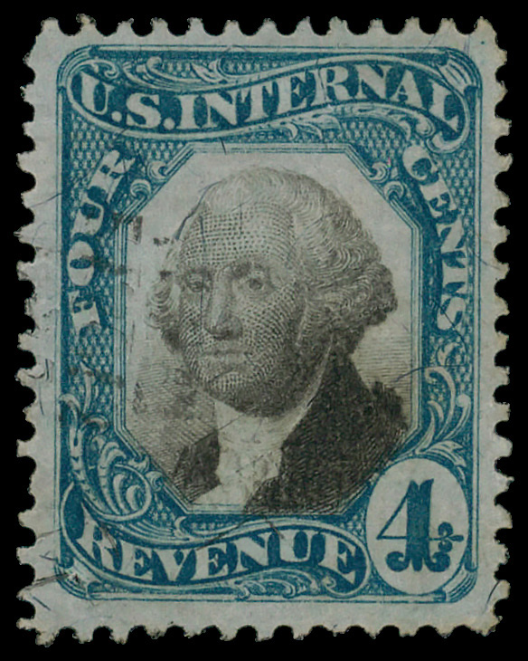 9276 O R106 imageDocumentary, 1871, Second Issue, 4¢ blue & black (Scott R106), cut cancel impression without actual slits, Fine to Very Fine.