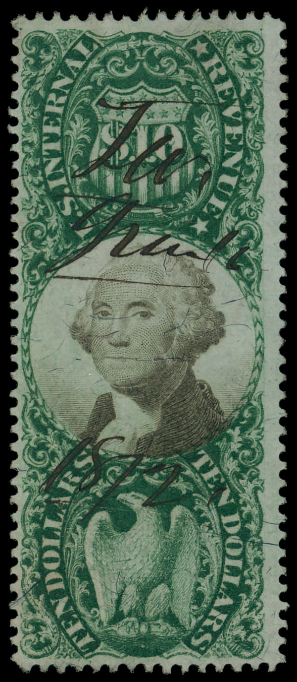 9277 O R149 imageDocumentary, 1872, Third Issue, $10 green & black (Scott R149), Fine to Very Fine.