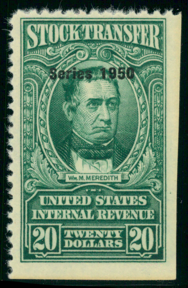 9280 ng RD329 imageStock Transfer, 1950, $20 Meredith (Scott RD329), unused without gum; straight edge at right & bottom, Very Fine.