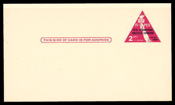 9274 og UX44f imagePostal Card, 1956, 2¢ FIPEX, rose pink & dark violet blue on buff (Scott UX44f), entire, o.g., never hinged, Very Fine.