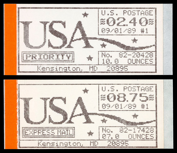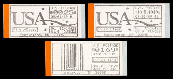 9272 nh CVP11a-CVP15a image1989, 25¢-$8.75 Computer Vended Postage, Kensington MD, machine #82, 1st Day Dated, complete (Scott CVP11a-CVP15a), set of 5, o.g., never hinged, Very Fine.
