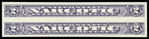 9287 nh RJA80a imageNarcotic Tax, 1963, 2¢ violet, imperf (Scott RJA80a), vertical pair, o.g., never hinged, Extremely Fine.