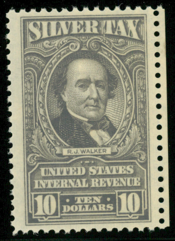 9286 nh RG125 imageSilver Tax, 1944, $10 gray (Scott RG125), o.g., never hinged, Very Fine.