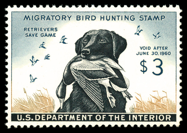 9293 og RW26 imageFederal Duck Stamp, 1959, $3 Labrador Retriever (Scott RW26), o.g., hinged, Very Fine to Extremely Fine.