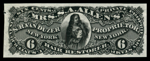 9288 P RS250P3 imageVan Duzer, S.R., 6¢ black, plate proof on India (Scott RS250P3), without gum as issued; crease, Very Fine to Extremely Fine.